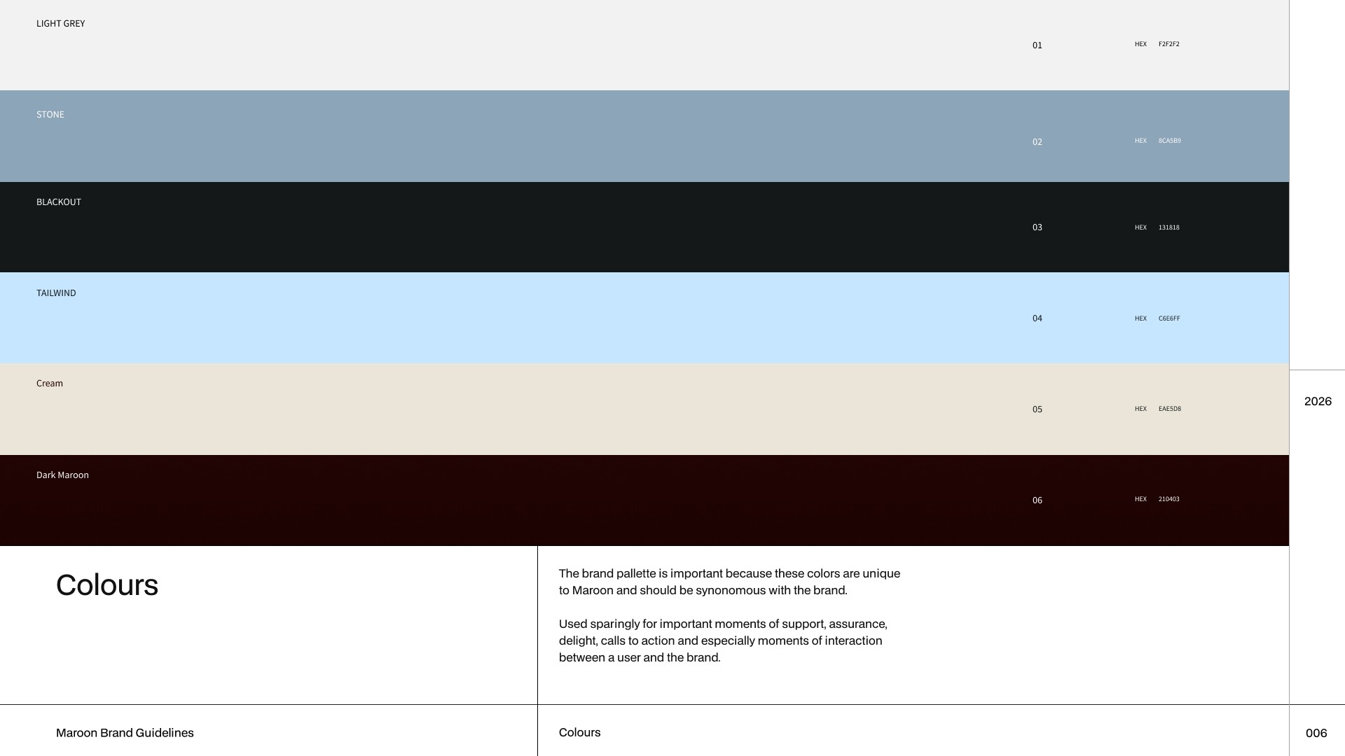 This brand book defines the visual and verbal principles that shape Maroon.